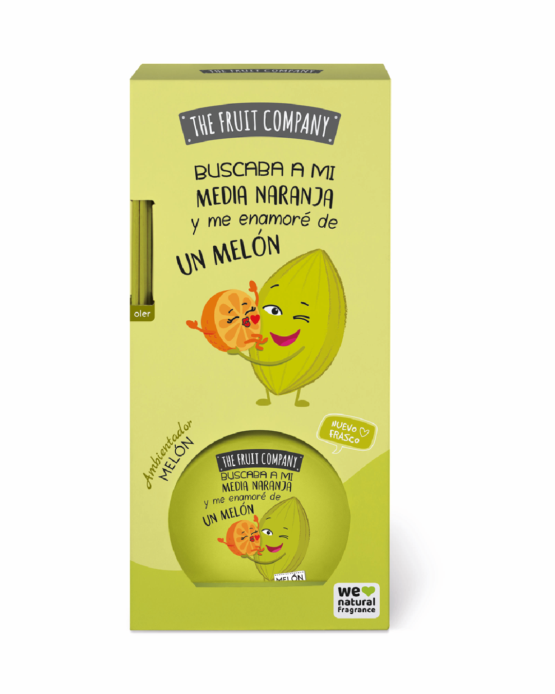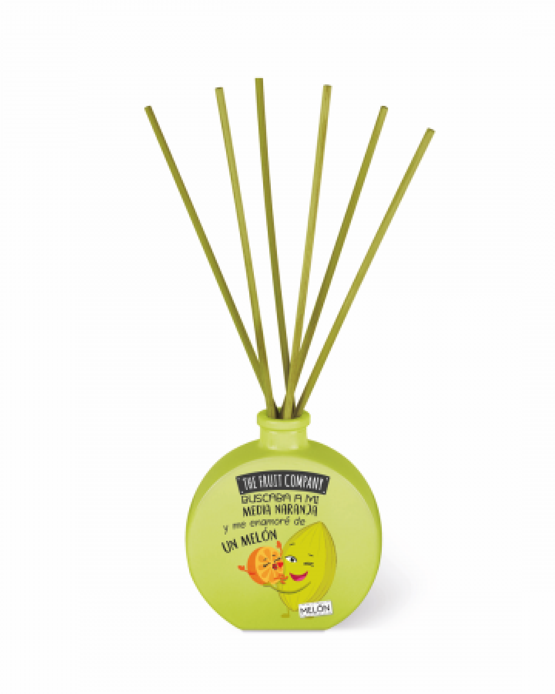BUSCABA A MI MEDIA NARANJA Y ME ENAMORÉ DE UN MELÓN Ambientador de mikado con aroma a Melón con extractos naturales. 0% Alcohol. Duración más de 60 días.