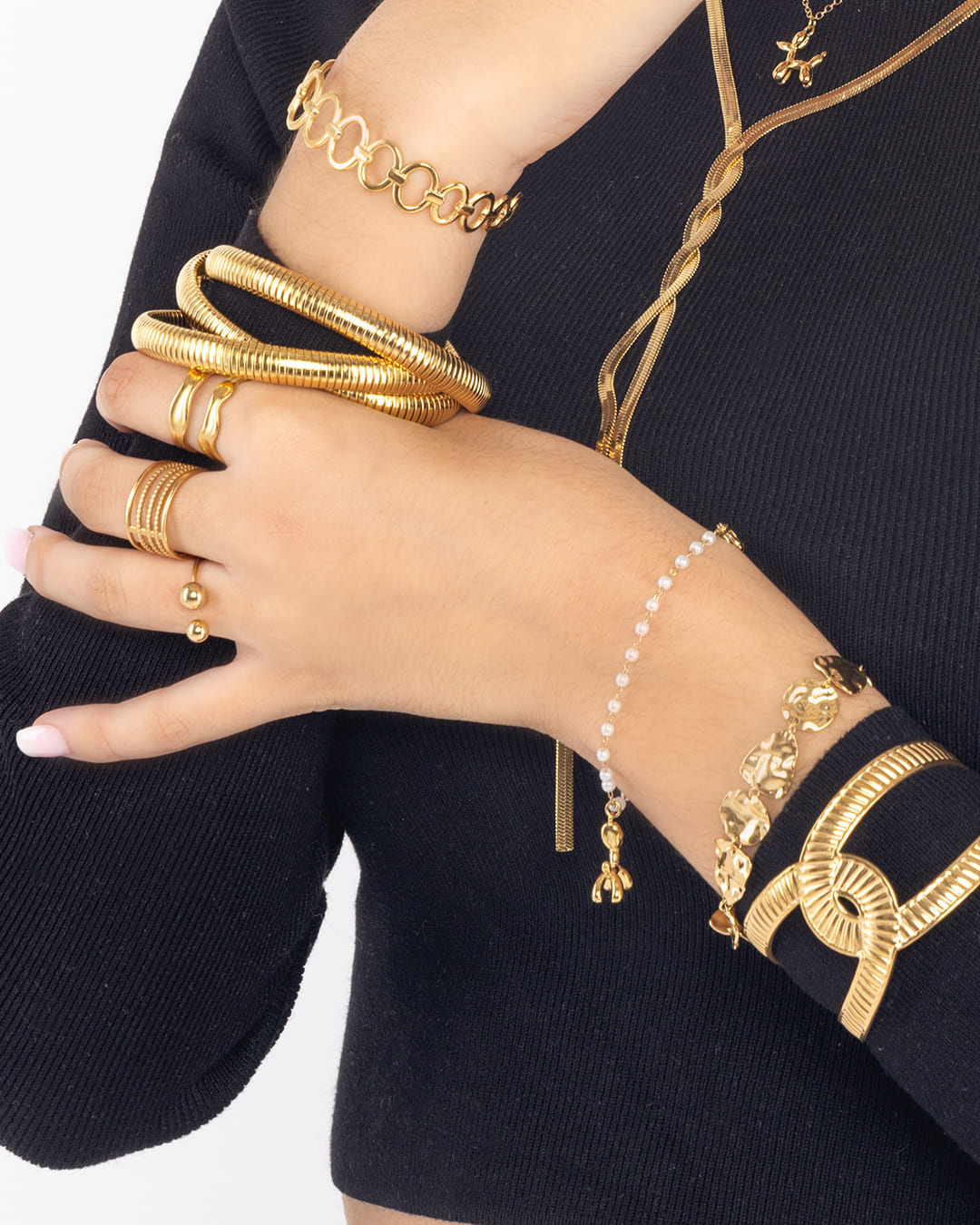 Esta joyita es una banda de acero acabada en bola en los dos extremos. Un estilo muy moderno y minimalista con un toque distintivo proporcionado por las dos bolas en los extremos. Fabricado con acero inoxidable de alta calidad, nuestro anillo garantiza una durabilidad excepcional y una resistencia impecable al desgaste diario. 100% Waterproof