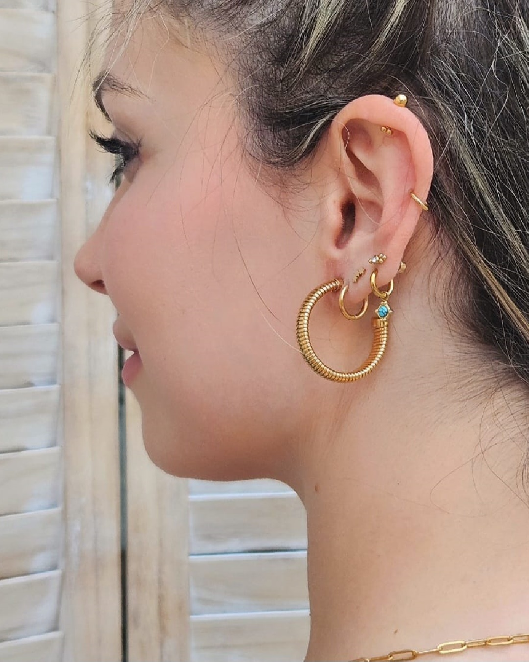 Fabricado con acero inoxidable y baño de oro de alta calidad, nuestros pendientes garantizan una durabilidad excepcional. Cada pendiente pesa solo 6 gramos para que puedas llevarlos todo el tiempo que quieras💖!! 100% Waterproof