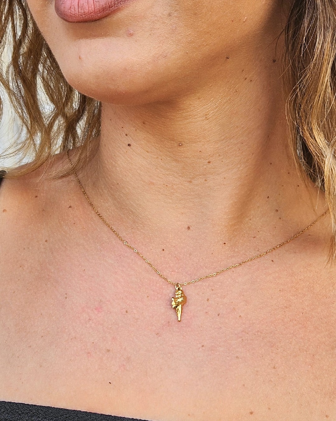 🐚 Un collar de acero de cadena fina con un charm de una mini concha o caracola que conquistará todos tus looks de verano. Fabricado con acero inoxidable y baño de oro de alta calidad, nuestros collares garantizan una durabilidad excepcional. 100% Waterproof.