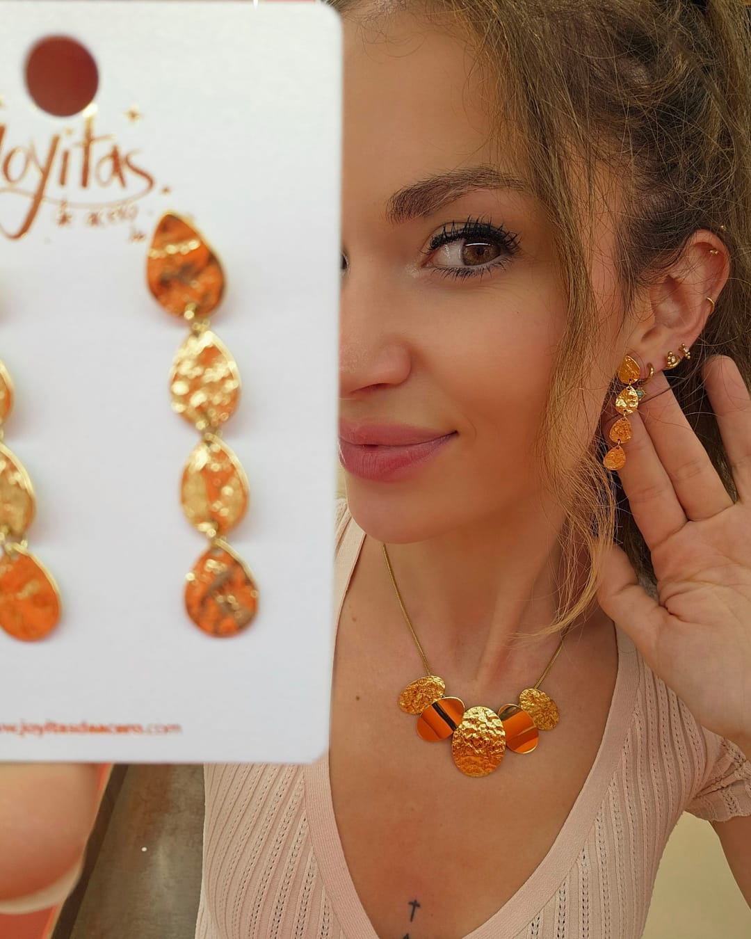 - El Collar Acero Cintia está diseñado con un baño de oro, texturizado.