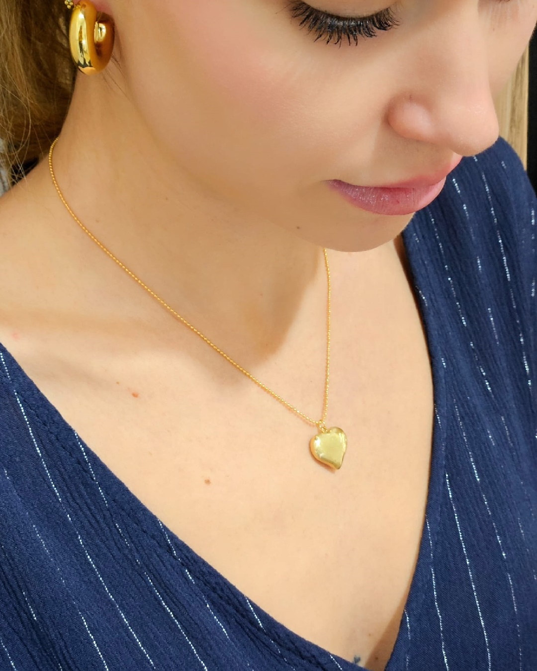 Hay piezas que combinadas llevan cualquier look a otro nivel, y este collar es el ejemplo perfecto. ✨ Su cadena de bolitas bañadas y el charm colgante de corazón harán que sea un amor a primera vista. 💘