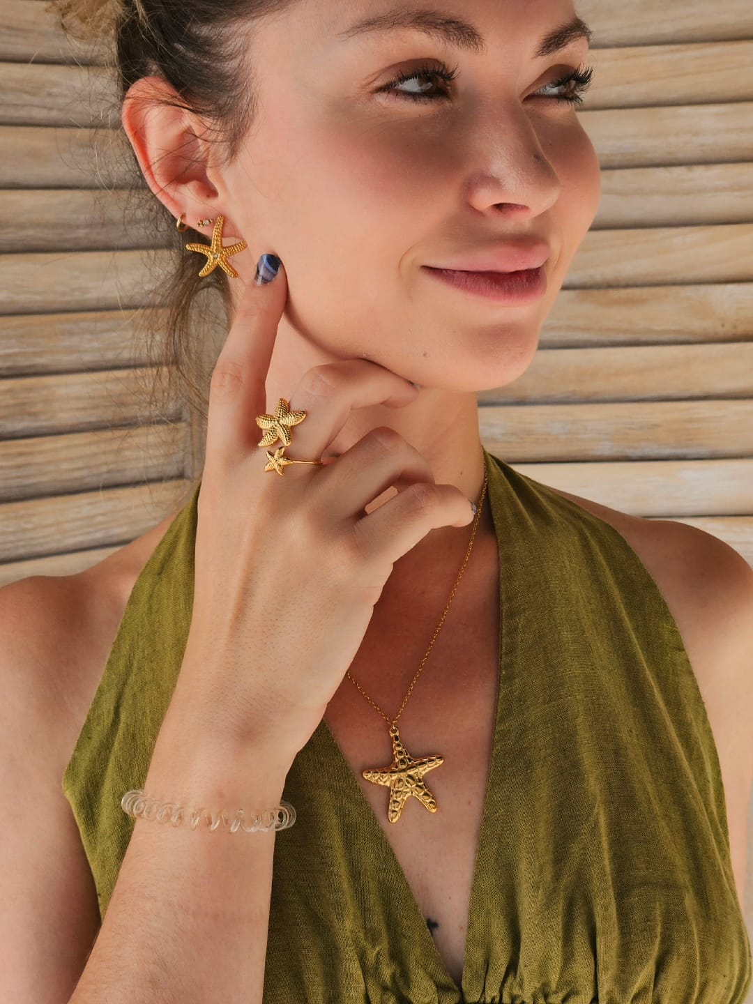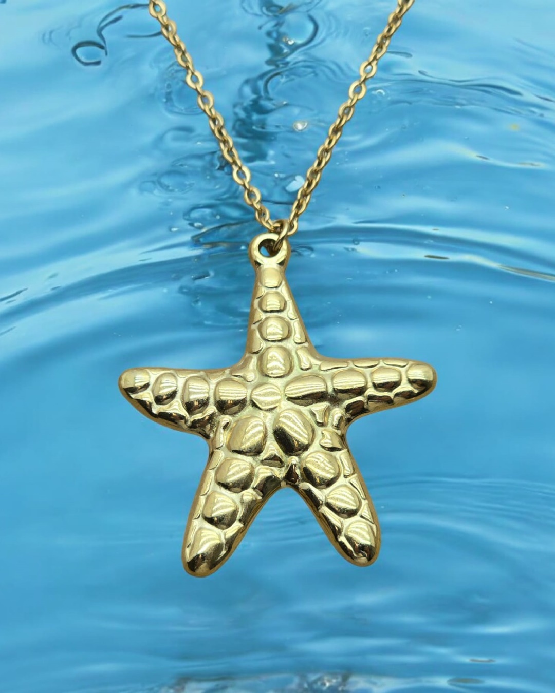 Este collar de acero es una elección encantadora para aquellos que aprecian la fantasía y la belleza del mar. Fabricado con acero inoxidable y baño de oro de alta calidad, nuestros collares garantizan una durabilidad excepcional. 100% Waterproof