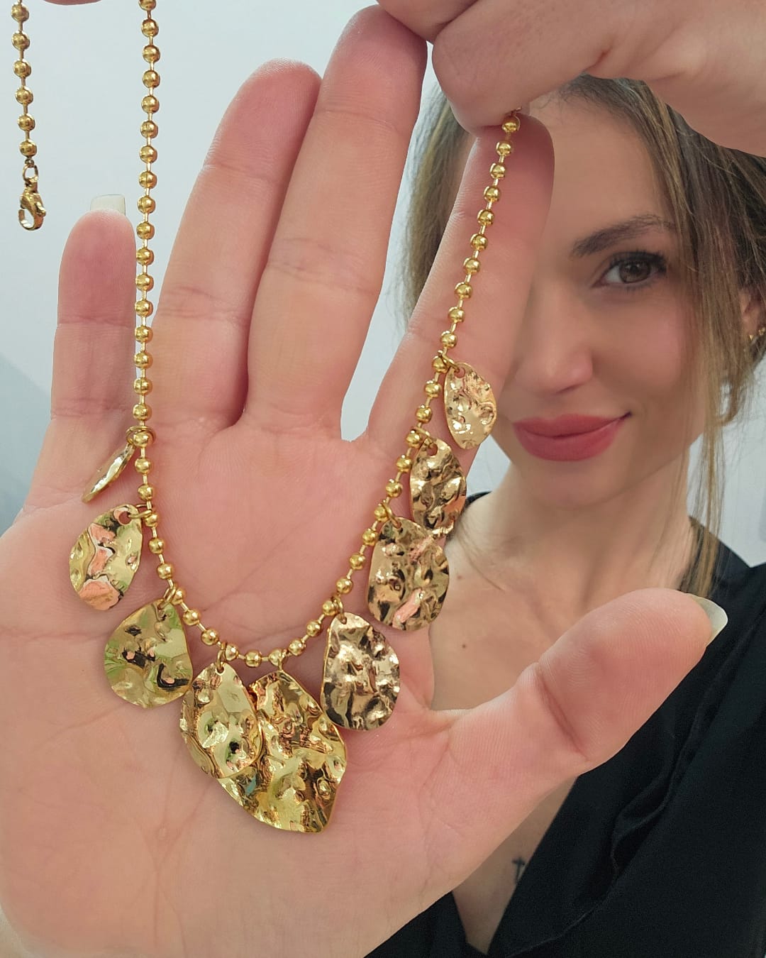 ✨ No es un collar, es movimiento, luz y actitud. Eclipse Botánico combina hojas orgánicas con un acabado espejo que atrapa cada reflejo. Fabricado en acero inoxidable en dorado y plateado, pensado para brillar en cámara y en la vida real. Minimal desde lejos, es hipnótico de cerca.