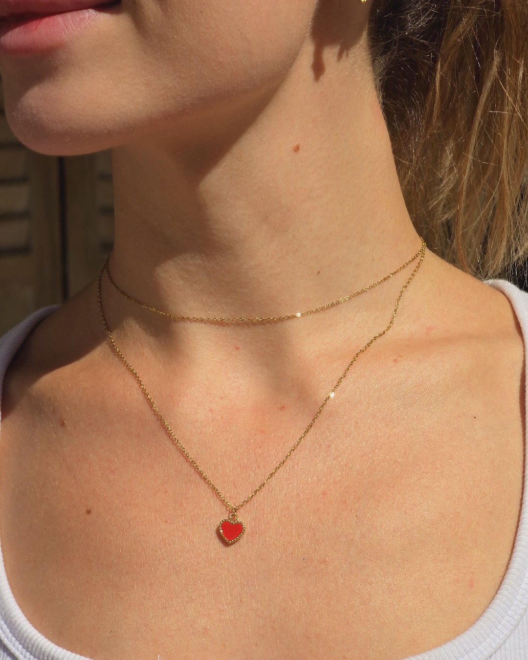 Esta joya puede tener un significado especial, como un regalo romántico o un símbolo de afecto. También puede ser un recordatorio de amor propio o un regalo significativo en ocasiones especiales como aniversarios, cumpleaños o simplemente como gesto de aprecio. En conjunto, una cadena de acero con un colgante en forma de corazón es una elección atemporal y versátil que puede complementar una variedad de estilos y ser apreciada en diferentes situaciones. Fabricado con acero inoxidable y baño de oro de alta calidad, nuestros collares garantizan una durabilidad excepcional. 100% Waterproof