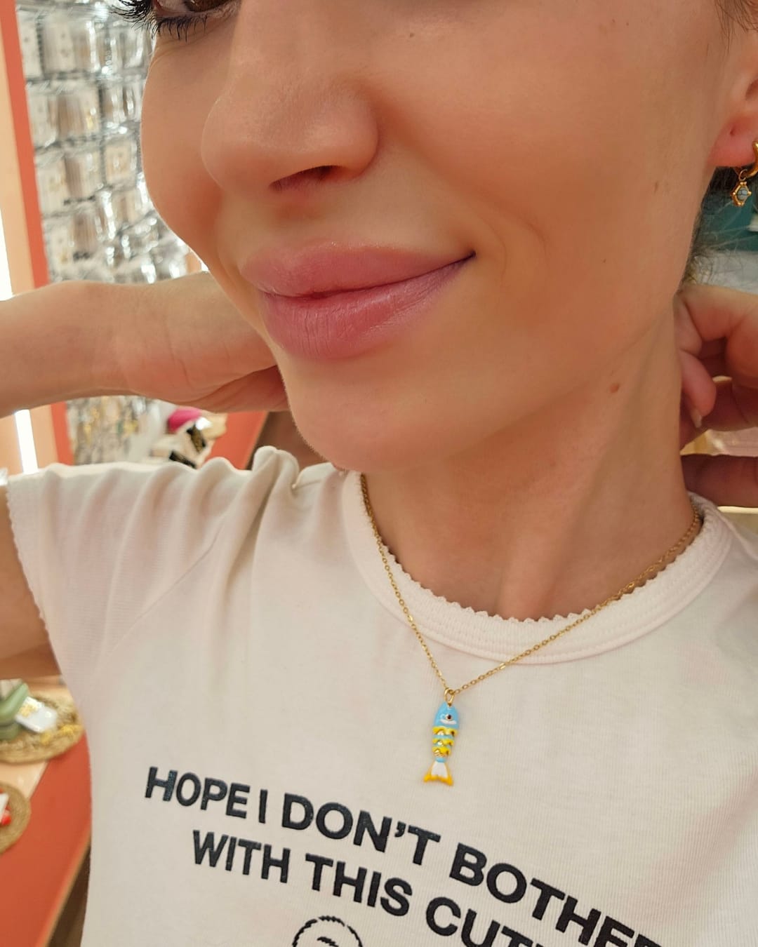 Dale un toque divertido y original a tu estilo con el Collar SummerFish, un diseño único que combina color y frescura. Su colgante en forma de pez articulado con detalles esmaltados en tonos azul, blanco y amarillo lo convierte en el accesorio perfecto para el verano. 🌊☀️