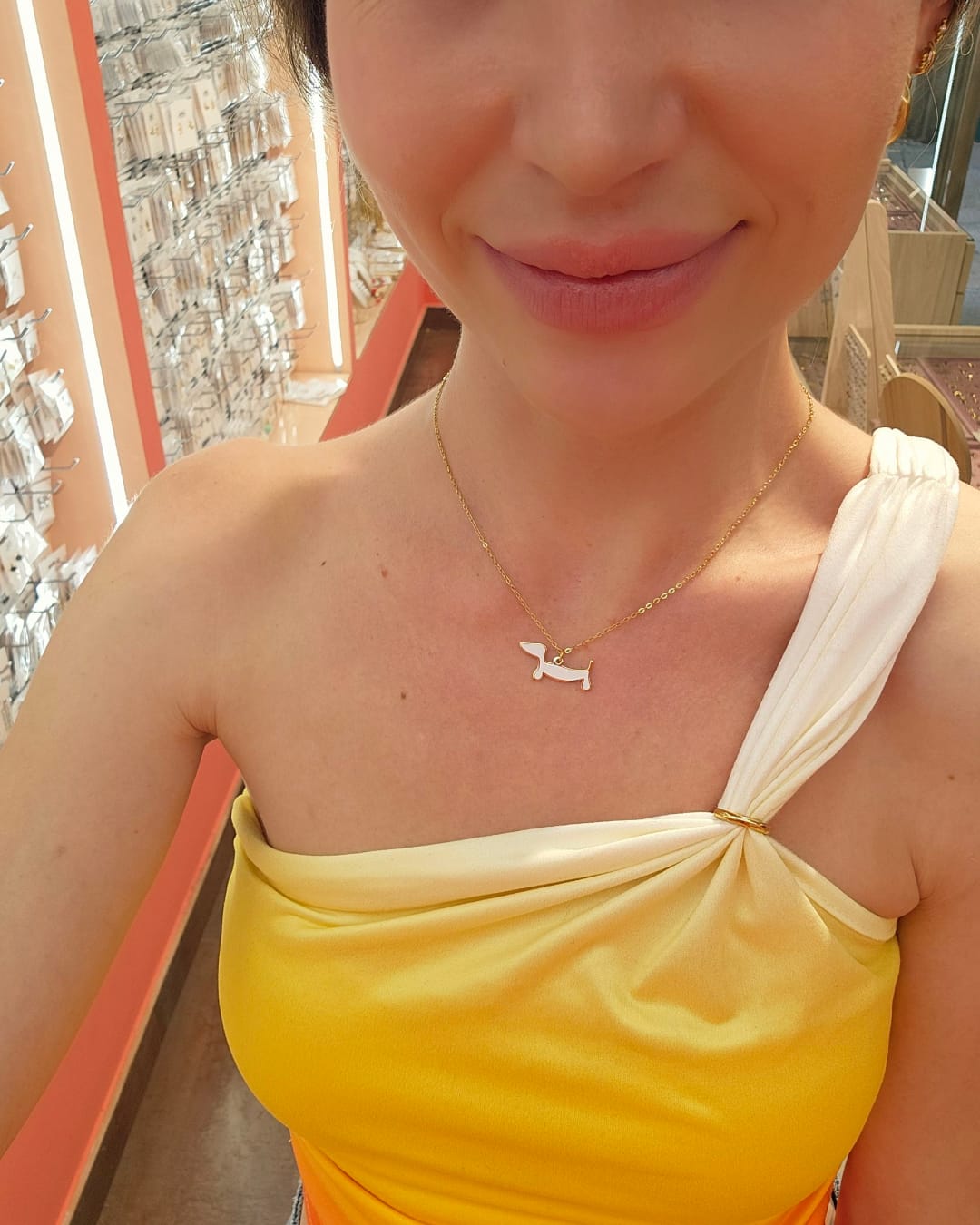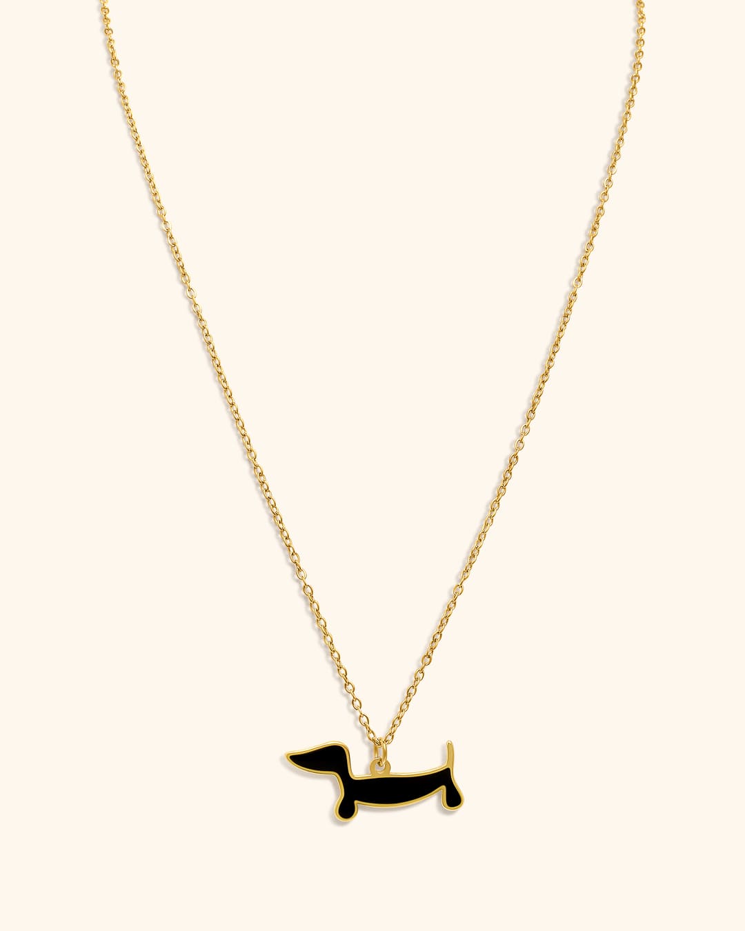¡Convierte tu amor por los Teckels en una joya! Nuestro collar de perro salchicha en acero con con detalle esmaltado negro o blanco, es el complemento perfecto para añadir a tu cadena de oro favorita. ✨