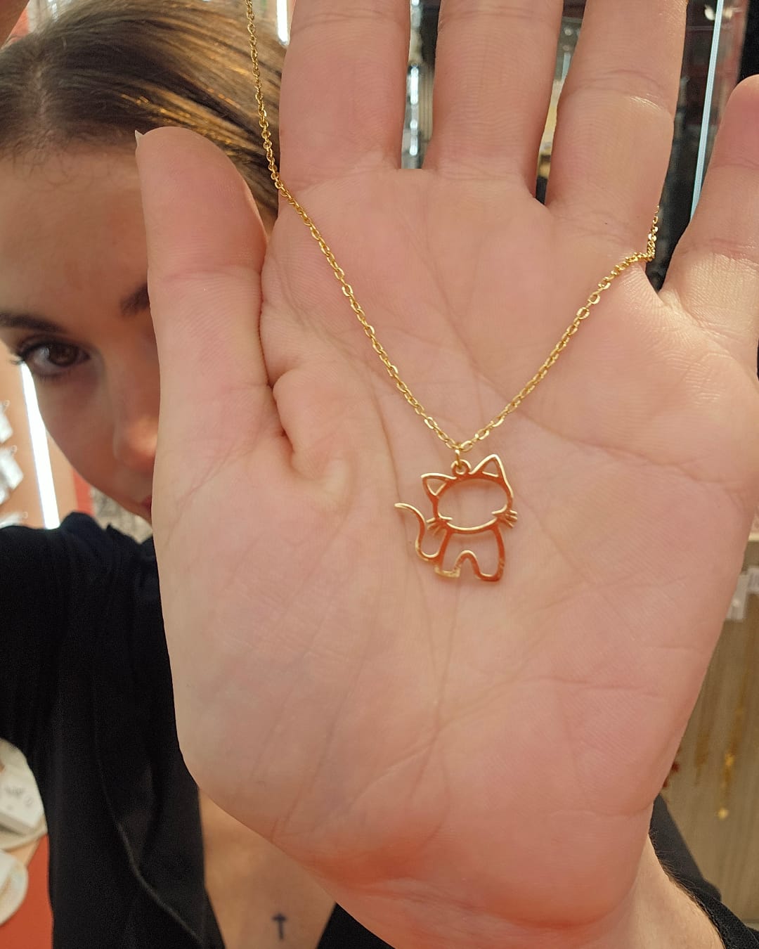 Perfecto para amantes de los gatos ✨ Si amas los gatos, este collar es para ti. No es solo un collar; es un detalle tierno, minimalista y con mucho estilo. Transforma cualquier look. Este collar de acero inoxidable con colgante de gatito es ideal para llevar todos los días. Combina con TODO. No pesa, no se oxida y no pierde el color.