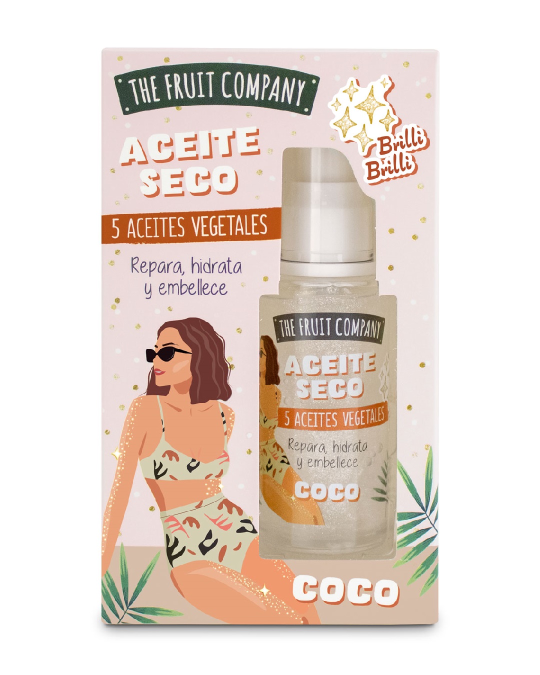 El Aceite Seco CocoThe Fruit Company con un toque de BrilliBrilli que NUTRE, REPARA Y EMBELLECE.