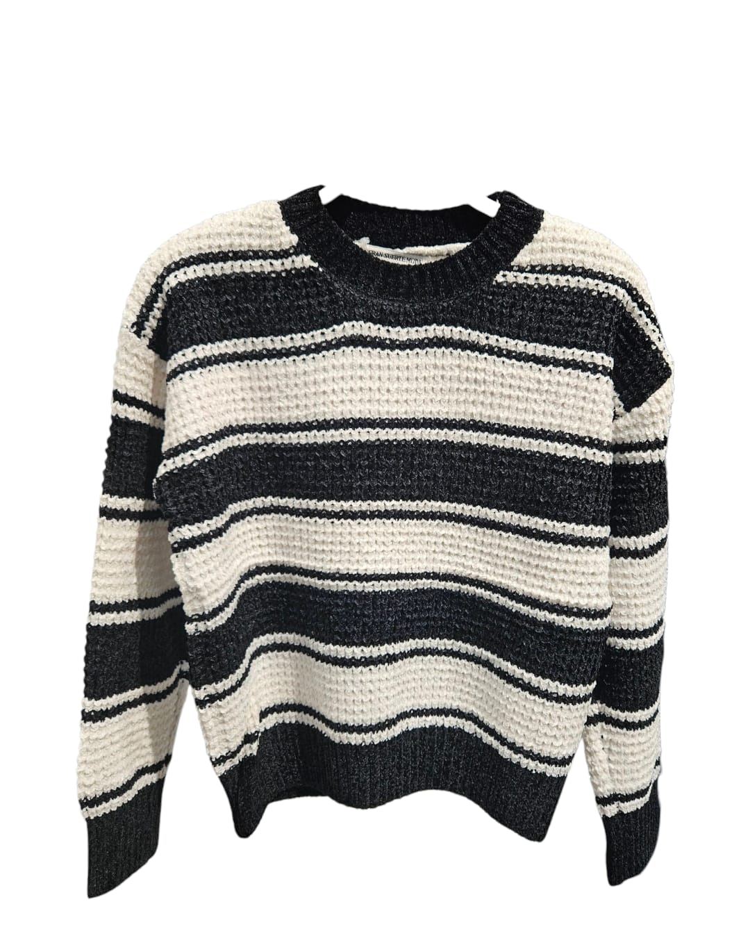 Suave, cómodo y versátil, el Jersey Rayas Marina es la prenda perfecta para tus looks casuales. Con un diseño de rayas en tonos azul y blanco, aporta frescura y estilo atemporal a tu outfit.