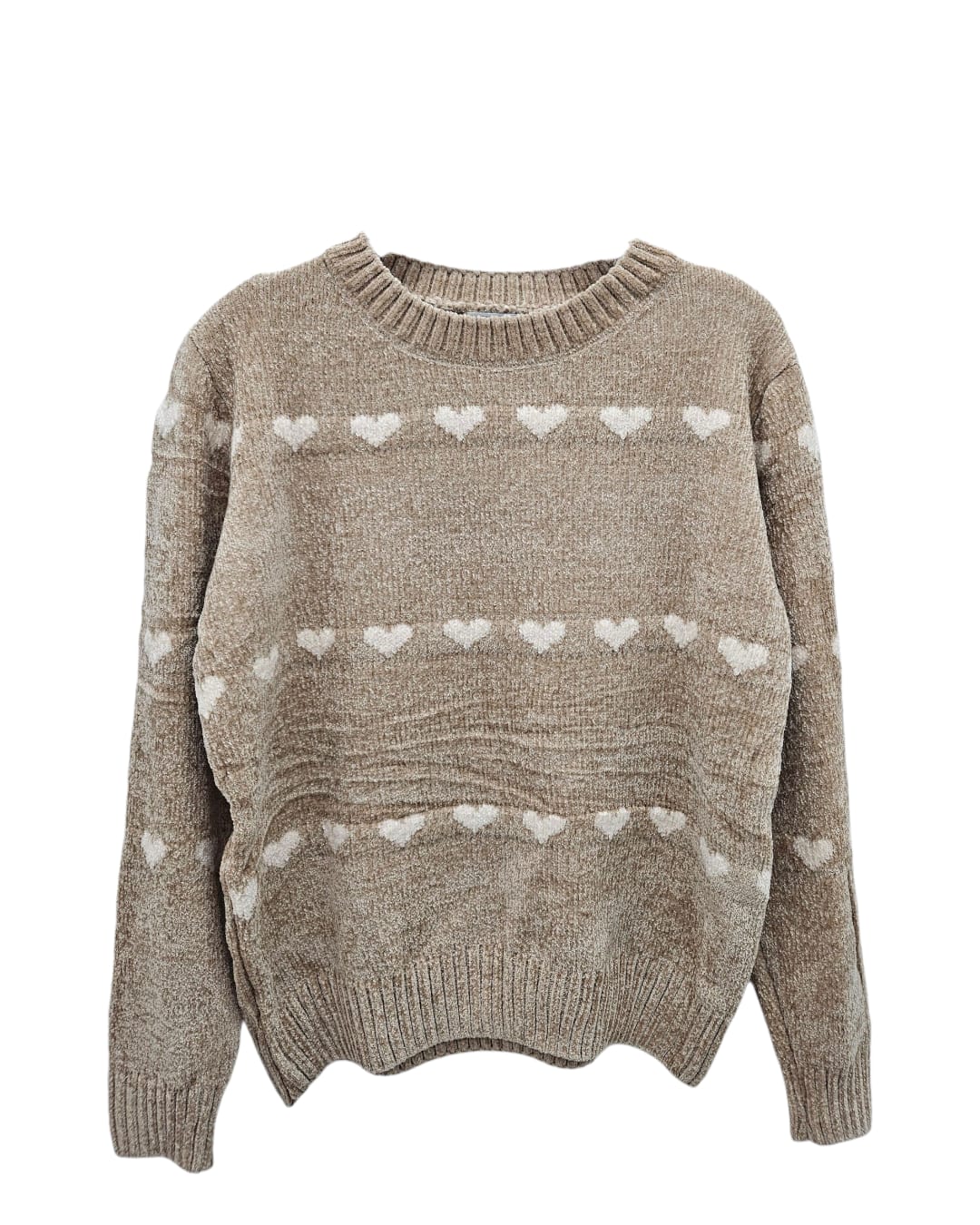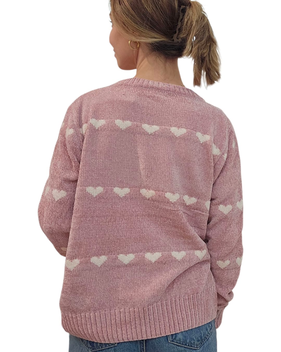 El Jersey Sweet Hearts es la prenda ideal para quienes aman los detalles delicados y femeninos. Su diseño con corazones tejidos en contraste aporta un aire romántico y dulce, sin renunciar a la comodidad.