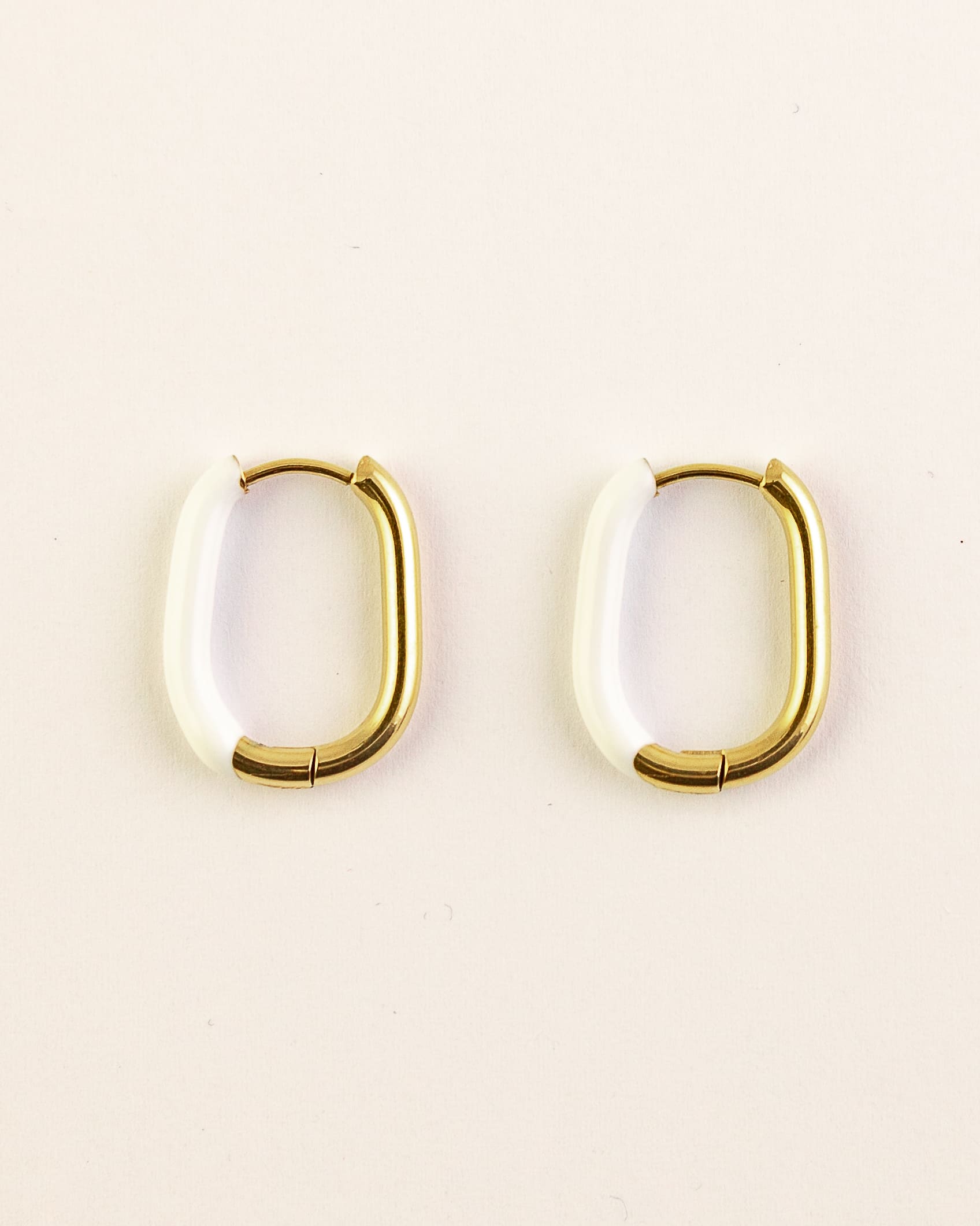 Los aros más divertidos bañados en oro y lacados en tu color favorito. Blanco, negro o azul... ¡querrás quedarte con todos! Combínalos con tus Pendientes favoritos y luce orejas llenas de color.Fabricado con acero inoxidable y baño de oro de alta calidad, nuestros pendientes garantizan una durabilidad excepcional. 100% Waterproof