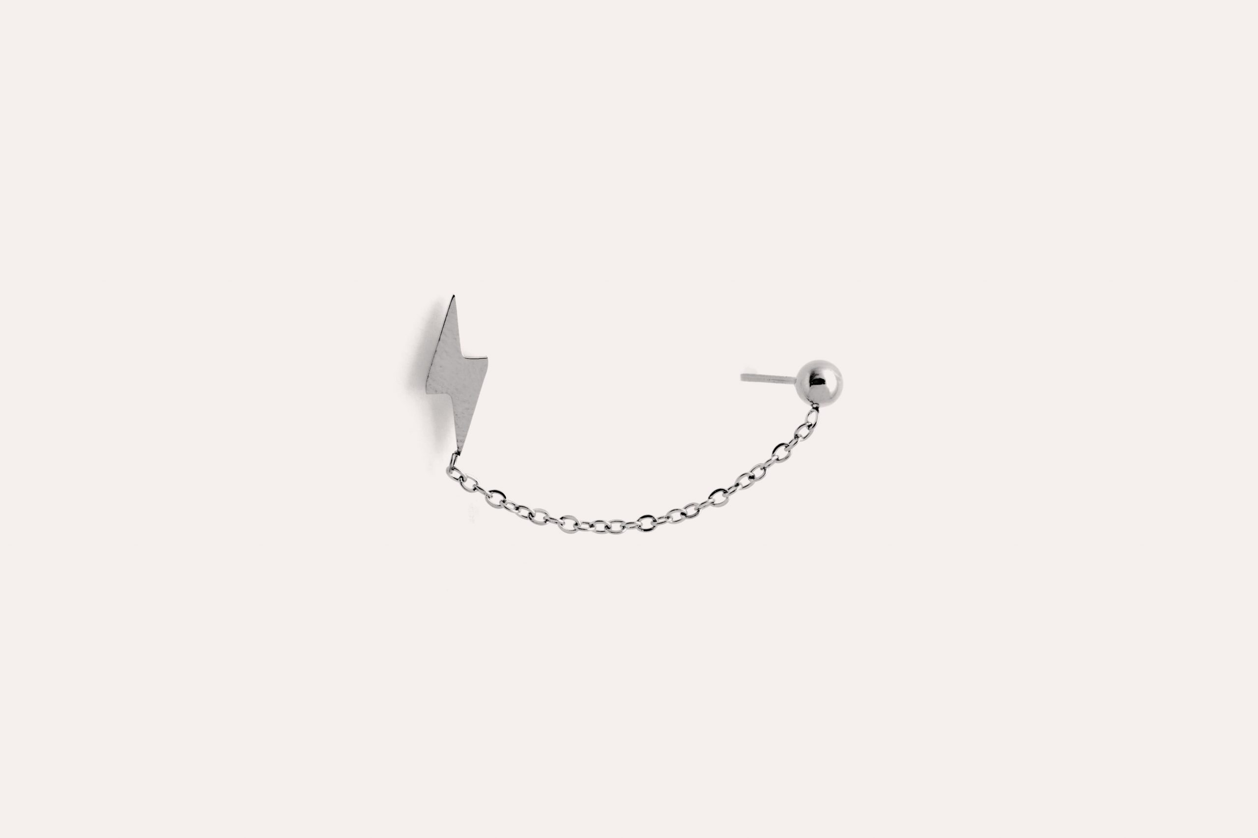 Este diseño con Rayo y Bolita con una cadena que los une es una joya moderna y elegante. Este tipo de pendiente es versátil y puede ser usado para diversas ocasiones, desde eventos más formales hasta salidas informales en las que se desee un toque de elegancia. Fabricado con acero inoxidable de alta calidad, nuestros pendientes garantizan una durabilidad excepcional. 100% Waterproof