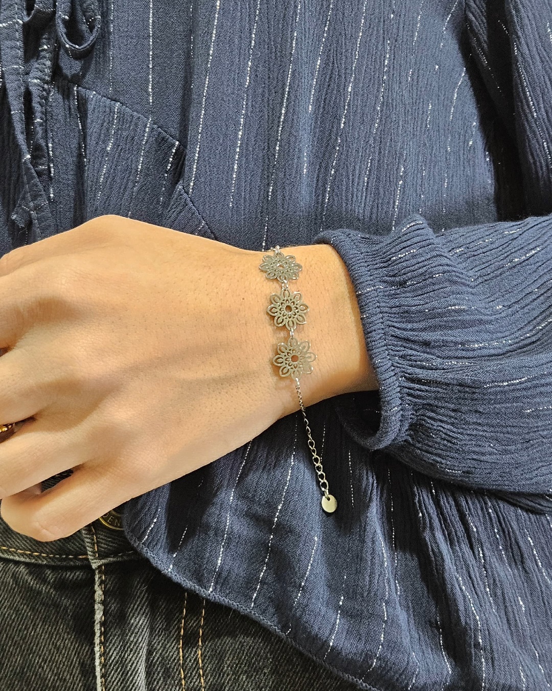 Tu pulsera Mándala lo puedes elegir en dos tonos: Acero inoxidable o Acero inoxidable con baño de oro. -Cadena ajustable 26/30cm