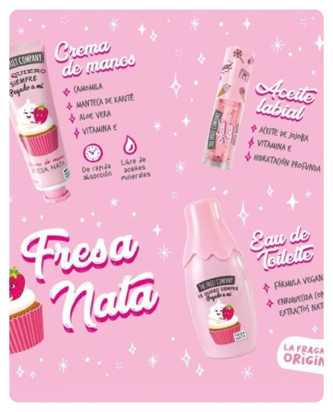Sumérgete en un mundo de dulzura y cuidado con el nuevo set regalo Fresa Nata de The Fruit Company.