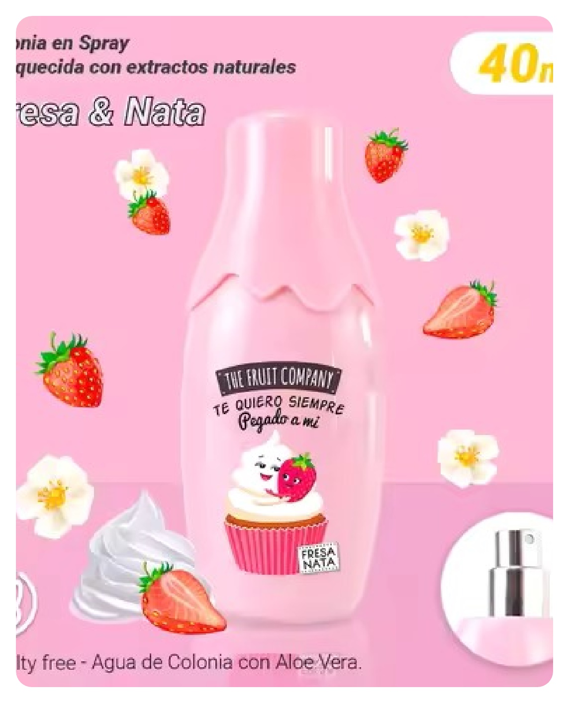 Además podrás disfrutar de nuestra Eau de Toilette con la fragancia original de fresa nata, enriquecido con extractos naturales y una fórmula vegana. Y para que puedas llevar todos estos maravillosos productos contigo a donde vayas, te incluimos un neceser de mano con un diseño divertido y práctico.