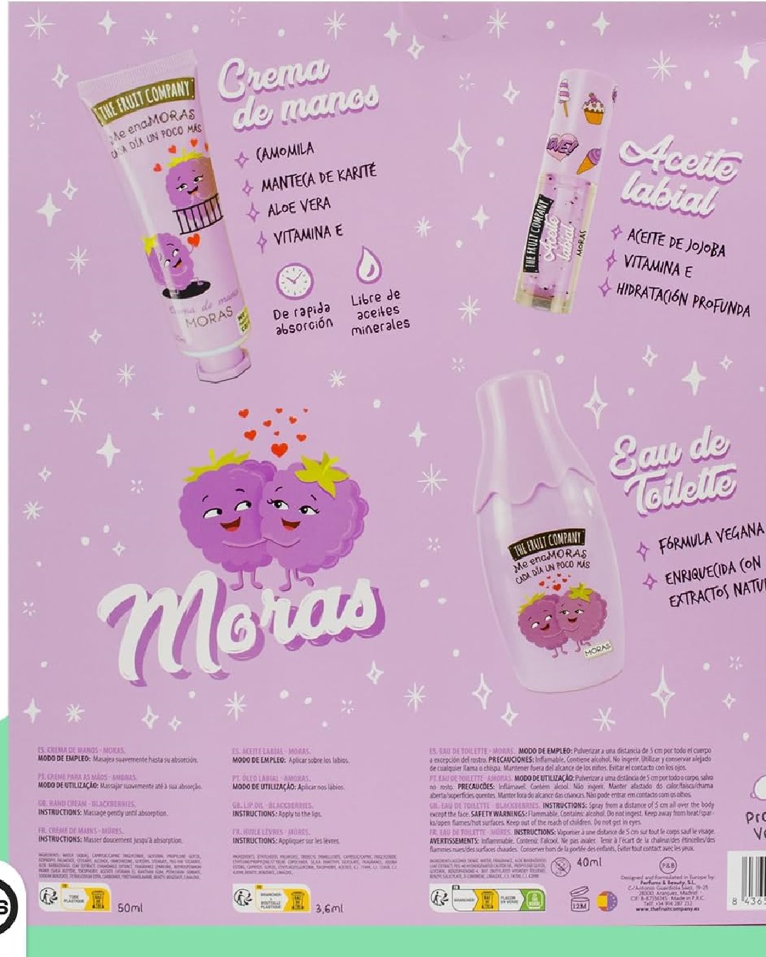 Déjate envolver por el dulce aroma de la mora con el Set Mora de The Fruit Company, una colección pensada para mimarte de pies a cabeza. Este encantador set incluye:Aceite labial: Hidratación intensa con un brillo natural.