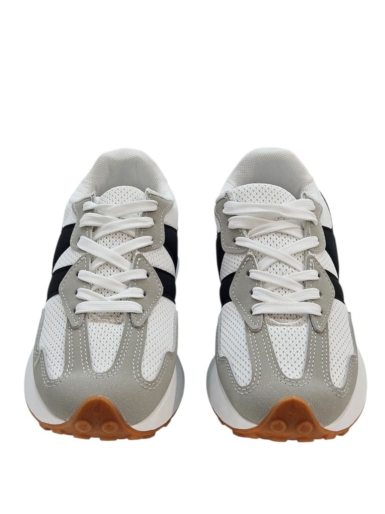 Zapatillas Deportivas Urbanas Blancas y Grises con Detalle Negro Transpirables y Cómodas para Uso Diario